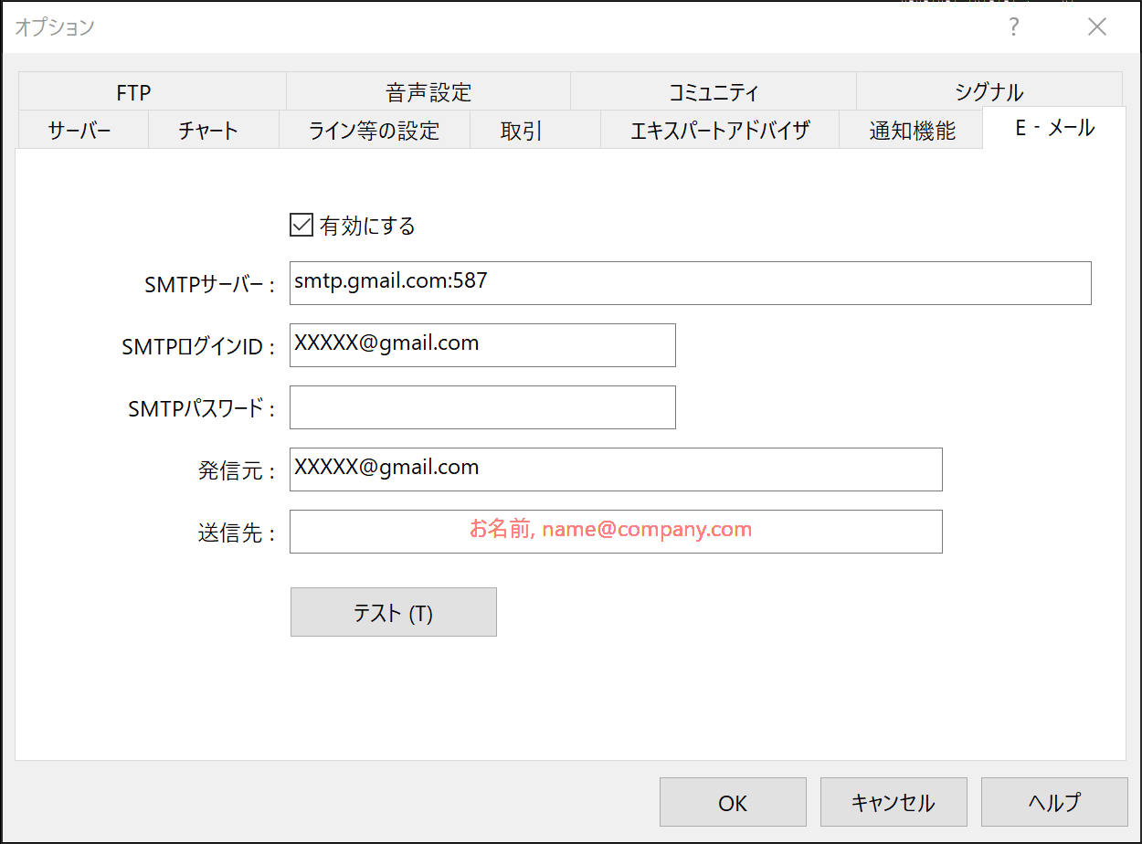 MT4メール設定
